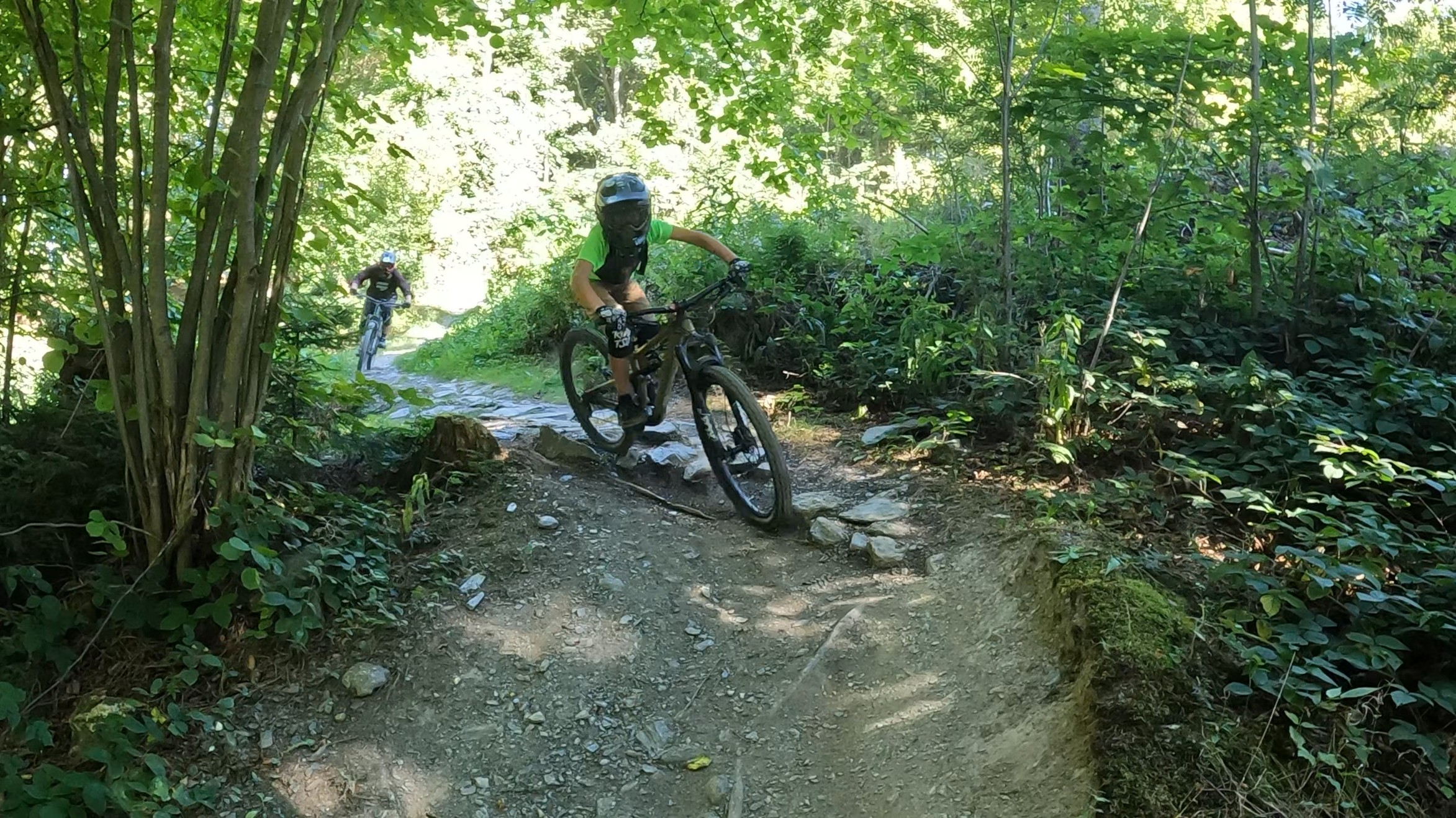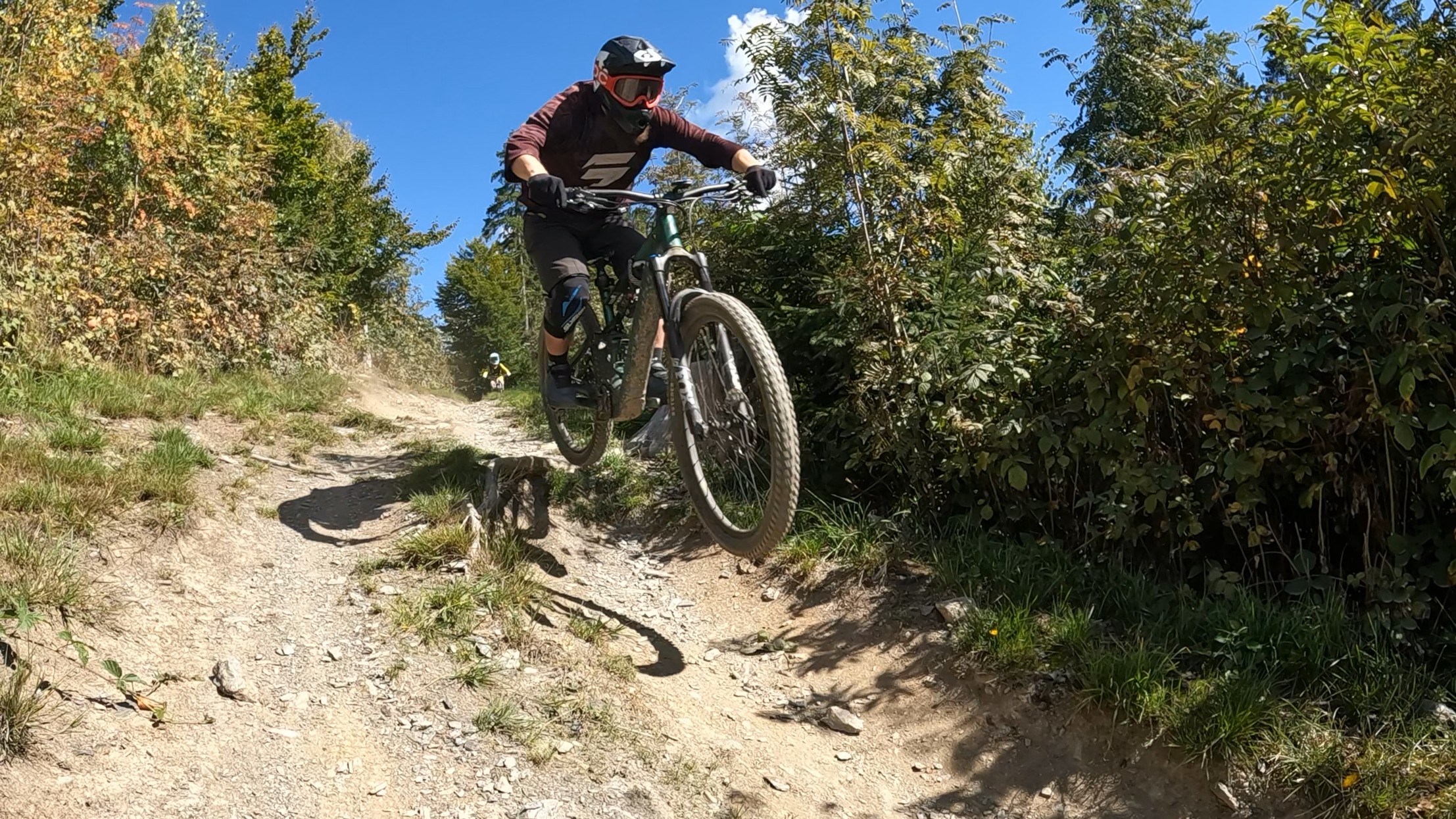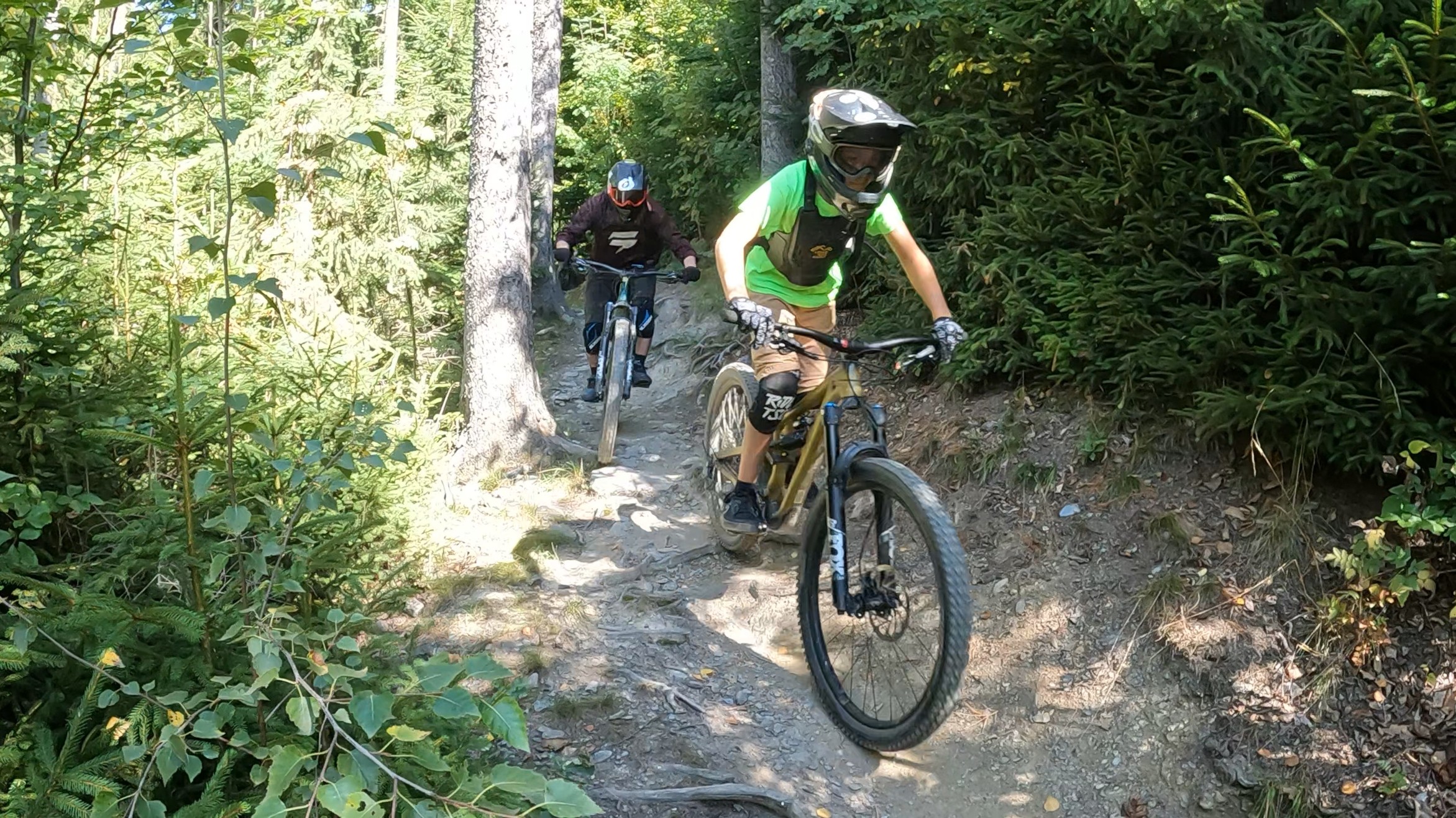 Bikepark se skládá ze čtyř základních trailů, které mají následně svoje další kombinace. Samozřejmostí je flow trail, určený široké veřejnosti. Velice rychlý a dobře upravovaný trail. Další klasikou je downhill, který je plný kamení, kořenů a prudkých sjezdů. Za nás možná nejzábavnější trať, pokud pominu zdejší jump lajnu, která je opravdu super, jen je potřeba buď mít dost slušný skill, abyste si ji užili a nebo se této trati více pověnovat a zdejší skoky si tak dobře nalítat. Na druhé straně bajkparku potom najdete dvě lajny, které jsou na způsob endura. To znamená žádné zákeřnosti jen pevně držet řídítka a poprat se s kamením a kořeny, kterého je tady všude dost. Tratě nejsou nijak dlouhé, ale s jejím počtem si tady v klidu vystačíte klidně celý víkend.